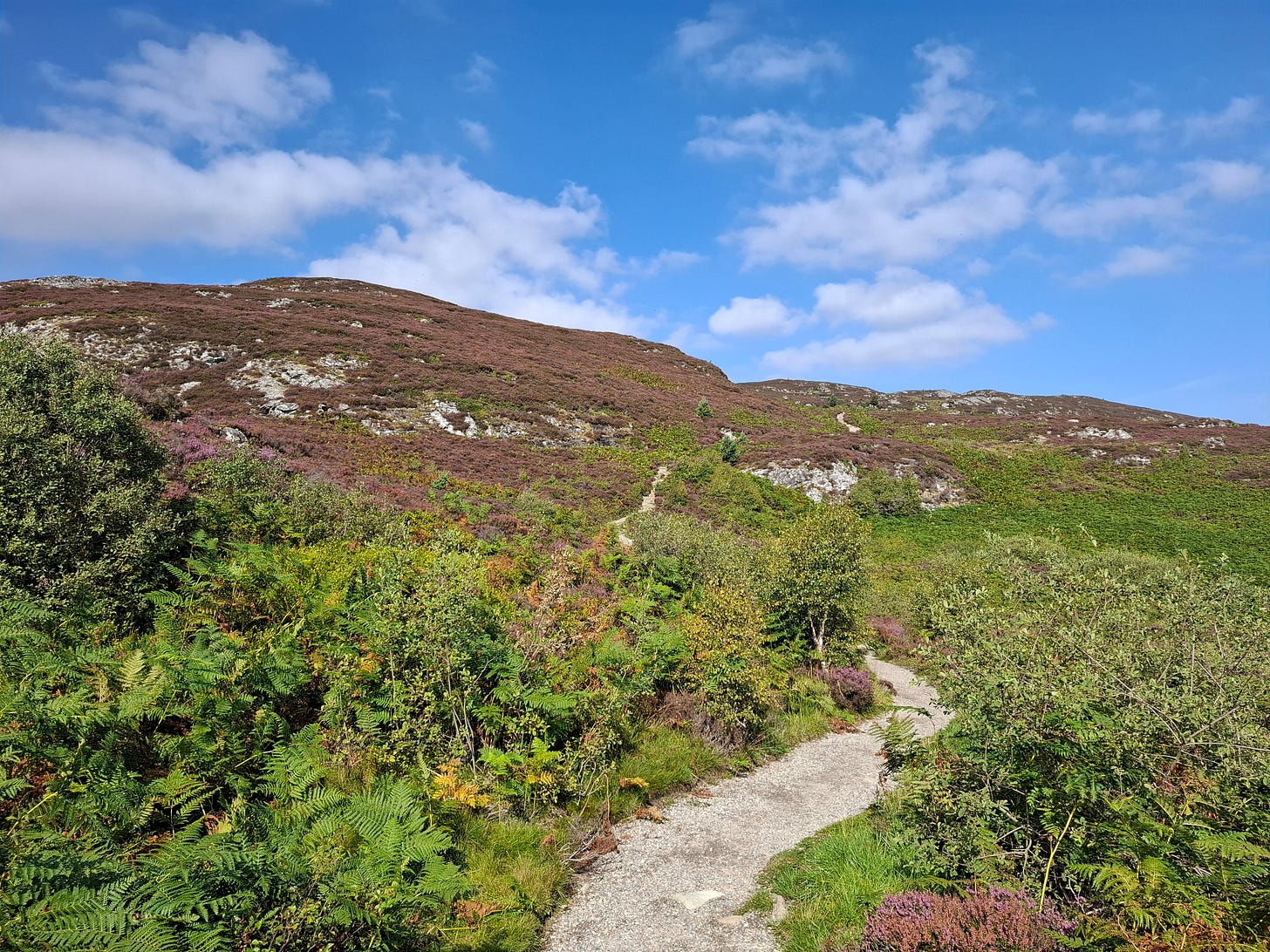 On Saturday I did a hike/walk/wandern up to Creag Bheag, which is where the beacons of Gondor were lit. I can stretch a 2 hour hike into 4.5 hours, no problemo, and I made full use of my glacial pace to calm down, breathe, think, pray, speak to trees and bugs, and take two hundred photos. I prefer to hike by myself so that when I spend 20 minutes getting the perfect shot of something or lie on my back on a bench and eat cheese and hum Taylor Swift there is no one to bother me or move me along. I talk to myself a lot. I hold entire conversations with flowers. I am quite pleased to be By Myself in the Wilds.